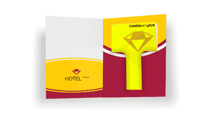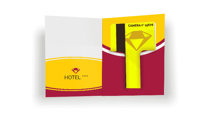 Coniughi così funzionalità e personalizzazione: le chiavi delle camere, personalizzate con il tuo logo e il porta card, con tutte le informazioni utili al soggiorno del tuo cliente.